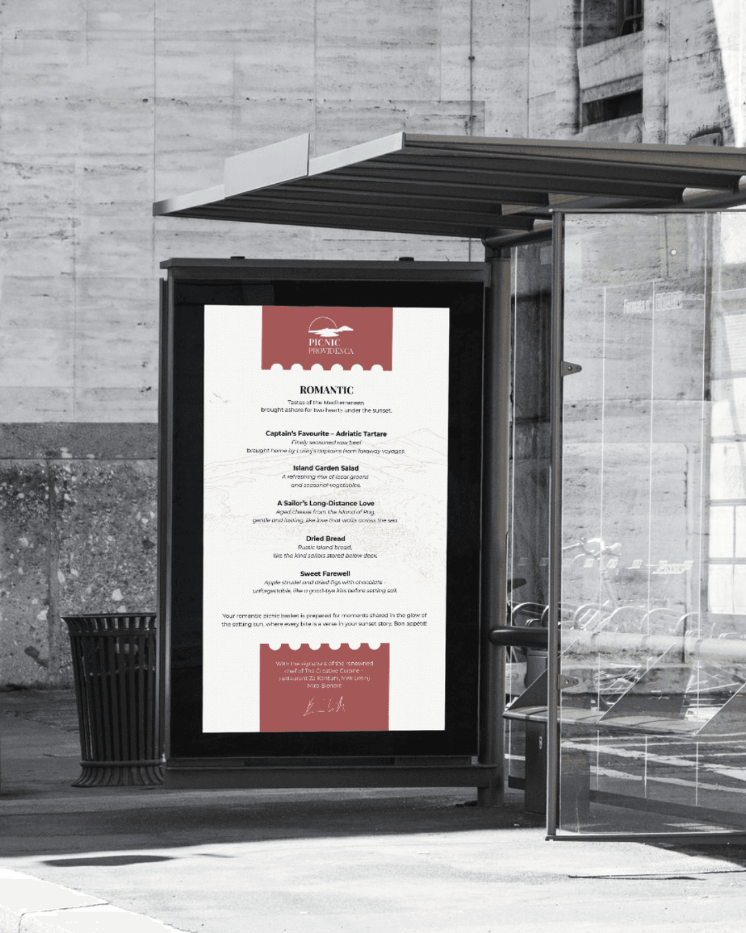 Osim digitalnog dijela, potpisujemo i sav grafički dizajn - od informativnih ploča i pokazivača, do omota hrane, vinskih etiketa i panoramskih karata. Ukratko, spajamo priču Providence s modernim dizajnom i komunikacijom.